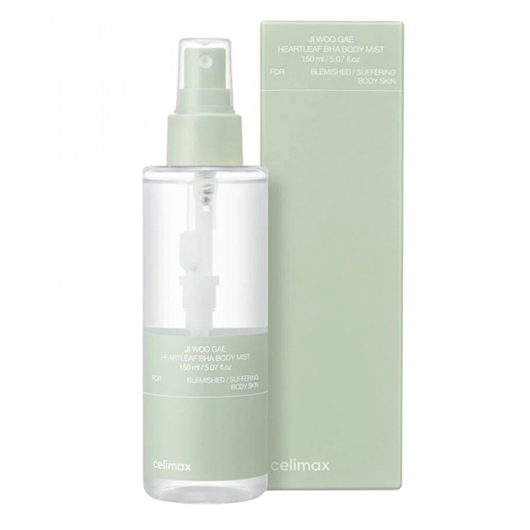 CELIMAX Ji Woo Gae Heartleaf BHA Body Mist - оновлюючий міст для тіла з кислотами та рослинними екстрактами, створений для щоденного догляду за шкірою, схильною до нерівностей, висипань і тьмяного тону. Формула делікатно відлущує, заспокоює та вирівнює текстуру, залишаючи шкіру гладкою, свіжою й доглянутою.