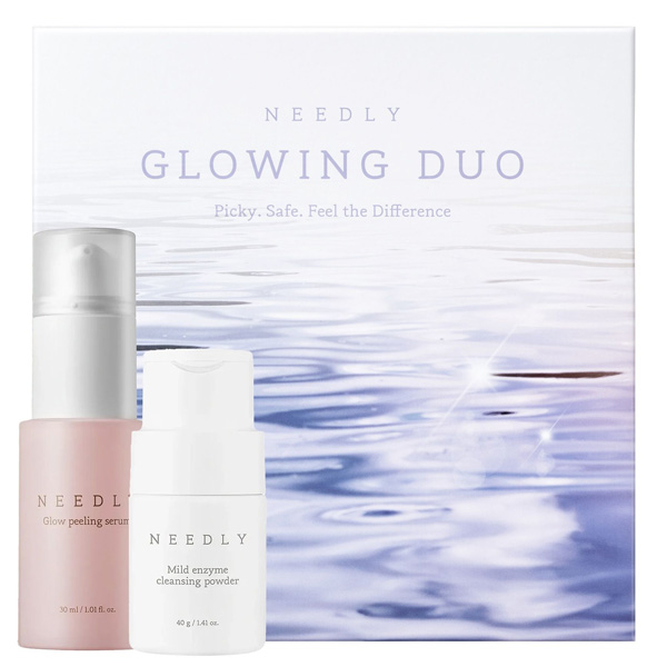 Glowing Duo Set від Needly - це ексклюзивний дует для розкриття природного сяйва шкіри через м'яке відлущування та згладжування нерівної текстури. Набір поєднує інноваційні підходи до ексфоліації: ферментативне очищення та кислотний пілінг, що працюють синергетично для досягнення здорового, променистого сяйва без подразнення чутливої шкіри.