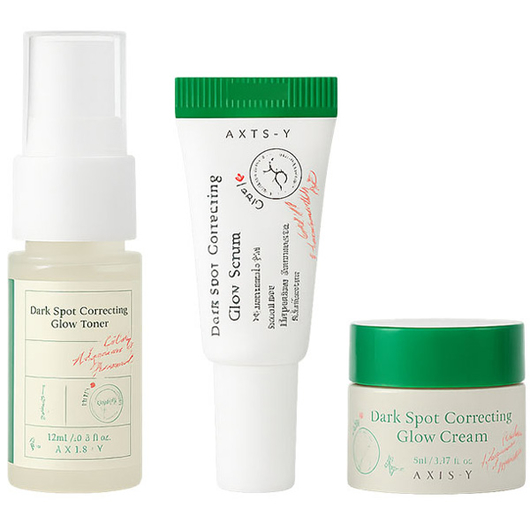AXIS-Y The Mini Glow Trio - компактний тревел-набір для старту догляду або поїздок. Програма з 3 засобів для освітлення, зволоження та відновлення шкіри з пігментацією, постакне та тьмяністю.
