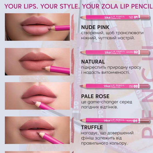Властивості та особливості Zola Lip Pencils: