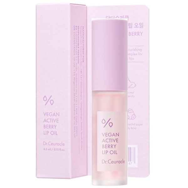 Dr.Ceuracle Vegan Active Berry Lip Oil - веганська олійка для губ із натуральними рослинними оліями та екстрактом журавлини забезпечує інтенсивне живлення, глибоке зволоження та швидке відновлення ніжної шкіри. Вона розгладжує поверхню губ, м’яко вирівнює дрібні лінії, підсилює природний колір і дарує здоровий, спокусливий блиск. Напівпрозорий ніжно-рожевий відтінок органічно доповнює як легкий денний макіяж, так і яскравий вечірній образ.