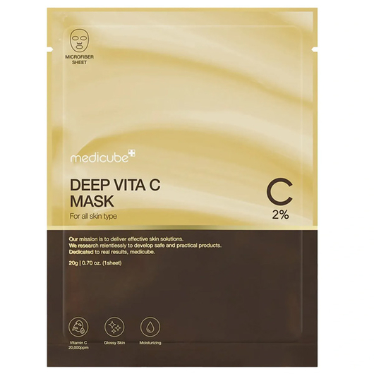 Medicube Deep Vita C Mask - тканинна маска з високою концентрацією вітаміну С, що повертає шкірі природне сяйво та рівний тон. Допомагає боротися з тьмяністю, пігментацією та першими ознаками старіння, роблячи шкіру свіжою та доглянутою вже після першого застосування.