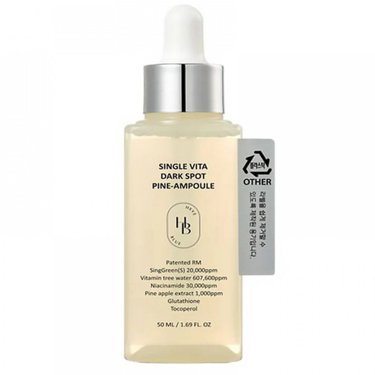 HEVEBLUE Single Vita Dark Spot Pine Ampoule - інтенсивний освітлювальний концентрат для корекції пігментації, вирівнювання тону та відновлення природного сяйва шкіри. Висока концентрація активів працює цілеспрямовано, допомагаючи зробити колір обличчя чистішим, яскравішим і більш однорідним без агресивного впливу.