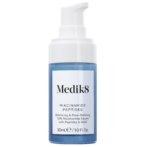 MEDIK8 Niacinamide Peptides - сироватка з 10% ніацинаміду, спрямована на роботу з висипаннями, розширеними порами та нерівною текстурою шкіри. Засіб допомагає збалансувати стан шкіри, зменшити жирний блиск і надати їй більш гладкого та доглянутого вигляду.