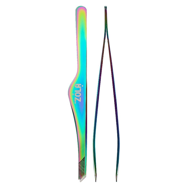 Скошений професійний пінцет для брів Zola Rainbow
