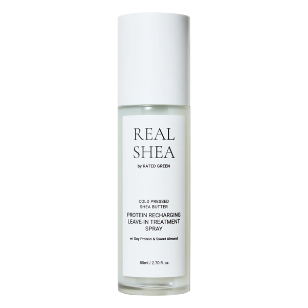 RATED GREEN Real Shea Protein Recharging Leave-in Treatment Spray - незмивний термозахисний спрей для волосся з органічним маслом ши та рослинними протеїнами допомагає пом’якшити пасма, полегшити розчісування та захистити волосся під час укладання. Засіб зволожує сухе й пошкоджене волосся, робить його більш гладким, слухняним і блискучим. Легка формула не обтяжує пасма та підходить для щоденного використання.