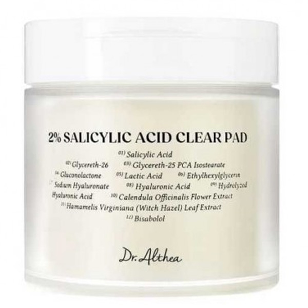 DR. ALTHEA 2% Salicylic Acid Clear Pad - ексфоліюючі тонер-пади з 2% саліциловою кислотою для м’якого, але ефективного очищення пор і вирівнювання текстури шкіри. Допомагають покращити тон, зменшити жирний блиск та зробити пори менш помітними.