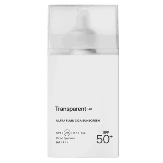 Transparent-Lab Ultra Fluid Cica Sunscreen SPF 50+ PA++++ - ультралегкий сонцезахисний крем із центелою для чутливої та реактивної шкіри. Забезпечує багаторівневий захист від UVB, UVA, інфрачервоного випромінювання (IR-A) та синього світла (HEV), не викликаючи подразнень і не залишаючи білого нальоту. Формула заспокоює, відновлює та підтримує здоровий баланс шкіри.