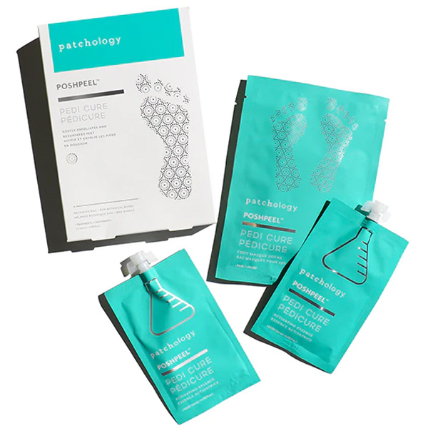 Patchology PoshPeel Pedi Cure — це ваш ідеальний помічник для домашнього педикюру. Відлущувальна маска для стоп з глибокою дією м’яко, але ефективно очищує шкіру, позбавляючи її від ороговілого шару, натоптишів та мозолів. Результат не з’являється миттєво — процес відлущування починається через кілька днів після використання та триває до двох тижнів. Така поступова дія гарантує делікатний догляд без подразнень.