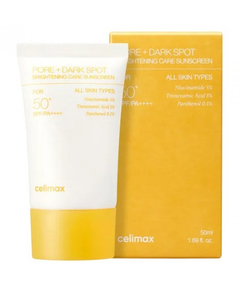 CELIMAX Pore+Dark Spot Brightening Care Sunscreen - освітлювальний сонцезахисний крем для щоденного використання поєднує високий рівень захисту SPF 50+ PA++++ із доглядовою дією. Завдяки сучасним хімічним УФ-фільтрам засіб ефективно оберігає шкіру від UVA- та UVB-випромінювання, водночас...