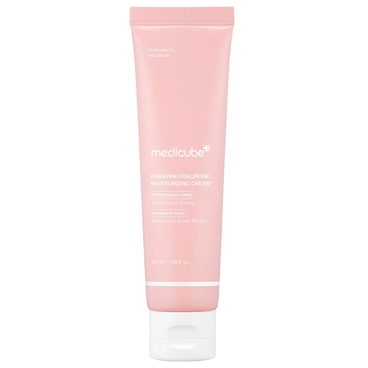 Medicube PDRN Pink Hyaluronic Moisturizing Cream - багатофункціональний крем, що поєднує силу 10 форм гіалуронової кислоти та полінуклеотидів (PDRN) для глибокого зволоження та активного відновлення шкіри. Легка, нелипка текстура робить його ідеальним для щоденного використання: крем зволожує, освітлює тон, зменшує почервоніння, зміцнює бар’єр та стимулює регенерацію.